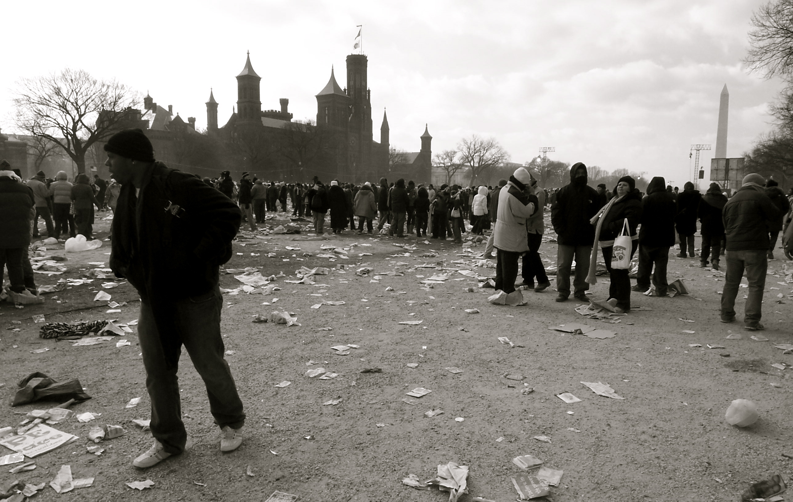 What you might not have been able to tell from the television coverage was that when Rick Warren said the Lord’s Prayer during his invocation, a good majority of the crowd said it with him. It was an amazing thing to hear, and to be a part of. Many around us were already crying by that point. Rev. Lowery’s benediction was another high point, prompting repeated and ever louder “Amens” as he continued. Of course, the Presidential oath of office was the best moment for the crowd, which erupted in celebration. During the inaugural address, everyone silenced and very little else could be heard but the President’s voice.