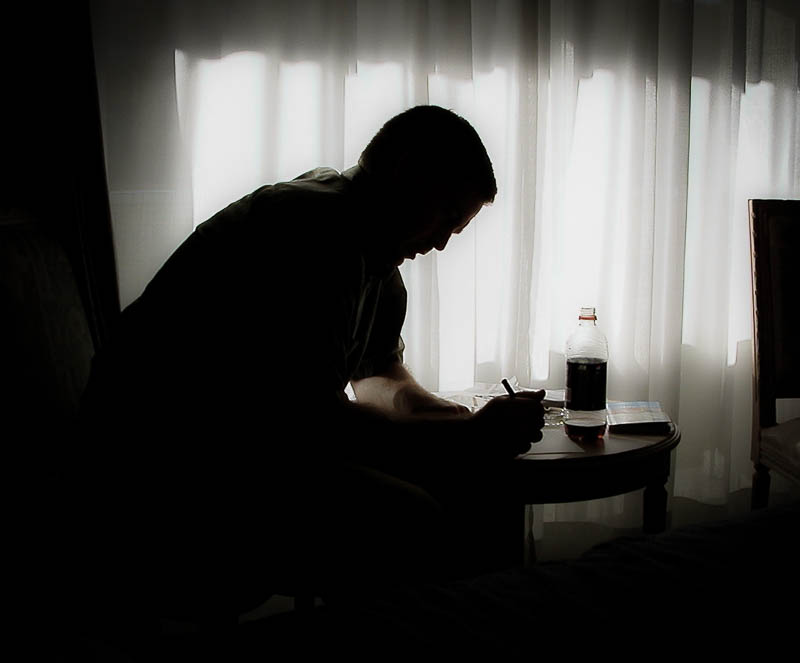 On an impulse he went into the bathroom and closed the door. Fished a new razor and scissors from his toiletries kit, which hung from the towel bar. Quickly, before he could wonder what he was doing or why, he started cutting chunks of hair from his face. He didn’t look in the mirror yet, but ran some water and splashed it on his face. He grasped the razor and pulled it against the remaining stubble on his cheek; he’d performed this act many times but the pain always surprised him – the first shave removing a beard was the worst.