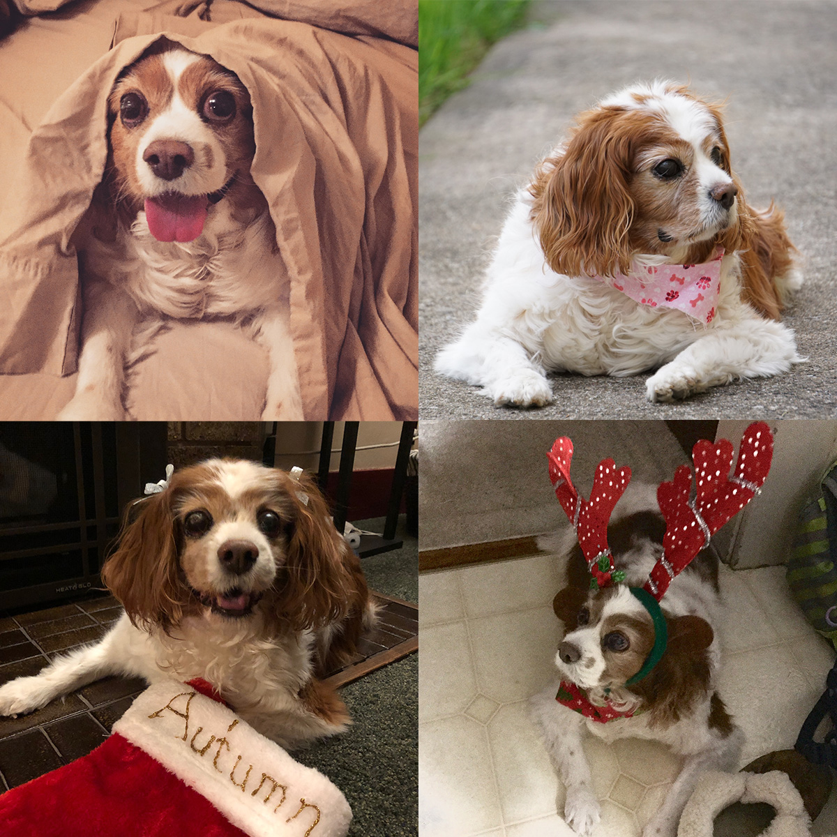 Over the years, Autumn had one health scare after another; I don’t think we had a year without an emergency vet consultation. Pancreatitis. Congestive heart disease. Pneumonia. She wore a diaper for incontinence and took antacid pills to help her stools. Her most alarming condition was what seemed like sleep apnea – she’d stop breathing, then bolt awake and scamper around, trying to restart her breath. It happened several times each day and night, and became more frequent as she grew older. I came to love her snore because it meant she was alive and resting peacefully.