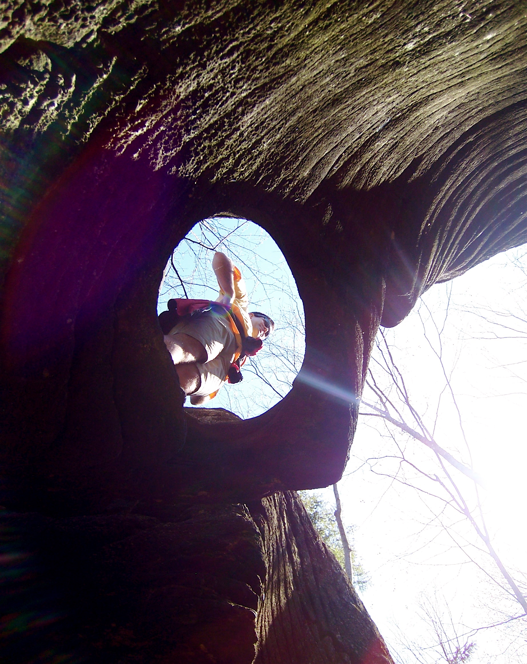 Moss Island is a real place (43.039771°N 74.848244°W) near Little Falls, NY, beside the Barge Canal. The island is 1500 feet long by 625 feet wide, famous for very large “potholes” (see the picture below) and as a rock climbing destination. It was declared a National Natural Landmark in May 1976.